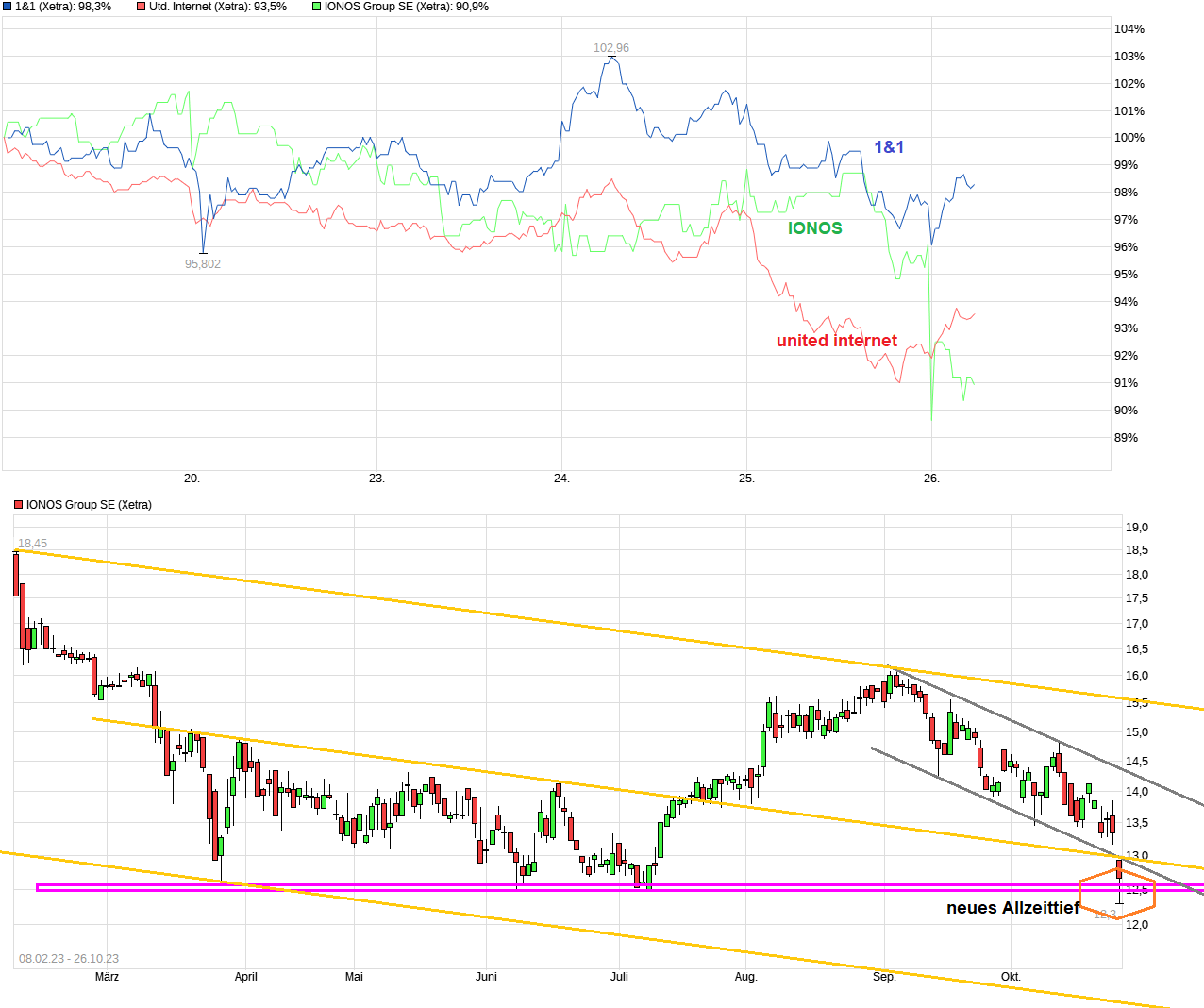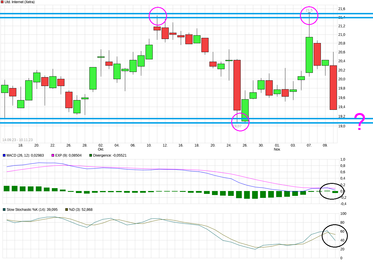 bagatela: #2236 -5% Was soll man da sagen. Ist das der anfang von mehr oder einfach nur mal gewinnmitnahmen.? ======================================= Tja, wer darauf eine 100% sichere Antwört geben könnte wäre man schnell reich? ;) Heute geht ja auch geht der Gesamtmarkt klar runter was auch belastet. Aber wenn parallel die beiden Grundsäulen Ionos und 1&1 auch verlieren, dann zieht es die Mutter eben auch runter. Von daher müßte man auch wissen was die beiden Werte weiter machen. Aus technischer Sicht ist erstmal interessant zu schauen, ob man sie Seitwärtsrange der jüngsten Zeit nach unten verlassen wird oder nicht, d.h. klar unter die 19,07 läuft. Das könnte sonst auch wieder technisch induzierte Anschlußverkäufe bringen.