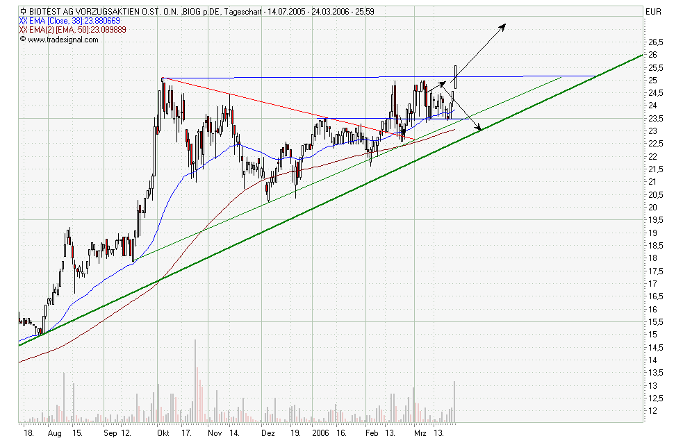 Entscheidend ist aber ohnehin die fundamentale Entwicklung. Wie permanent schon schrieb, erhöht der SDax lediglich die Aufemerksamkeit und unter Umständen steigen Index-orientierte Fonds dann zusätzlich ein. Bei Biotest auch angebracht.