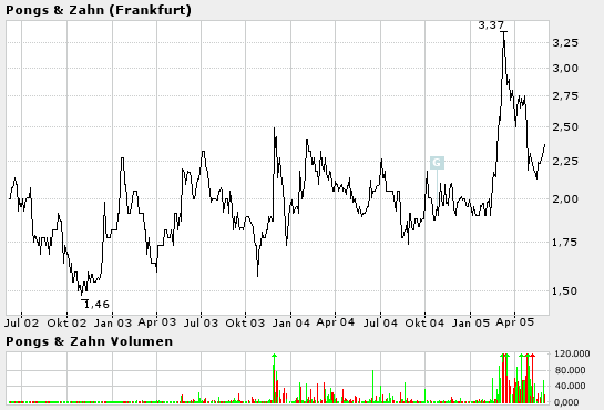 Nach dem 31.03.05 wurden wieder Optionen in Aktien getauscht und das zu 6,00€, 330.000St. für 1,98Mio.!!! - Positiv zu sehen, PUZ fliest frisches frisches Kapital zu. Aber wer kauft zu 6,00€, an der Börse 2,xx ???