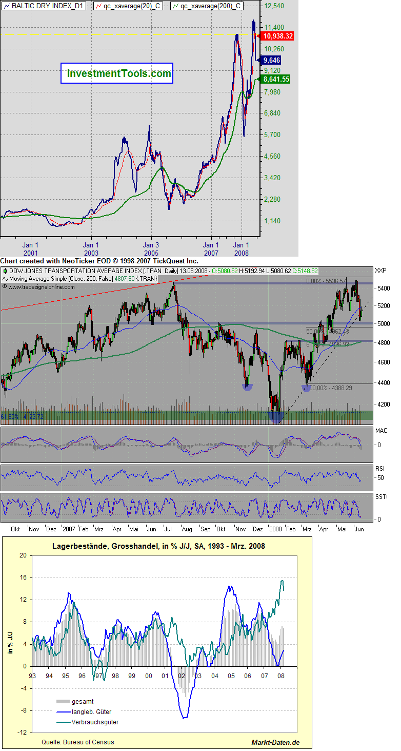Schaut man auf den BalticDryIndex oder den Tran gibts da kaum Unterschiede in der Kursentwicklung(beide Abwärts)und beide Indizes haben zum damaligen Zeitpunkt(nahe der Tops) gelogen wenn man sie als Kaufgrund für den Gesamtmarkt bzw. eine Konjunkturerholung genutzt hätte.