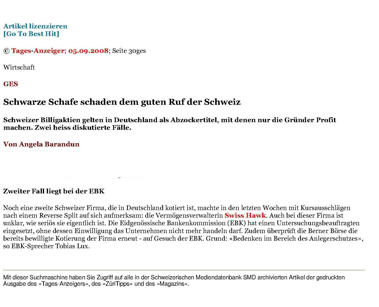 und warum ich daran Glaube das es hier für investierte Positiv wird  Hätte Swiss Hawk die Untersuchungsbeauftragten arglistig getäuscht um an der Berner Börse Kotiert zu werden wäre es doch schon längst aufgeflogen und die Untersuchungsbeauftragten hätten sofort der EBK diese arglistige Täuschung mitgeteilt. Ziele der EBK Die Aufsichtstätigkeit der EBK verfolgt die Ziele "Gläubigerschutz", "Anlegerschutz", "Gewährleistung der Funktionsfähigkeit der Effektenmärkte" und "Funktionsschutz". Diese Begriffe können wie folgt umschrieben werden: | Gläubigerschutz | Anlegerschutz | Funktionsfähigkeit | Funktionsschutz | | Verhinderung und Minimierung von Verlusten für Publikumseinleger | Vertrauensschutz bei individuellen und kollektiven Vermögensanlagen | Transparenz der Effektenmärkte | Systemstabilität | | Schutz der Kunden | Transparenz der Anlage und des Verhaltens | Gleichbehandlung der Marktteilnehmer | Vertrauensschutz | | Verhinderung der unbewilligten Entgegennahme von Publikumseinlagen | Sicherheit der Kundenvermögen | Schutz von Minderheitsaktionären | Rufschutz | | Effiziente Sanierung oder Liquidation | Gleichbehandlung | Schutz vor gesetzwidrigen Angeboten | Unterstützung bei Verbrechens- bekämpfung | | Indirekter Schutz der Eigentümer, inklusive Steuerzahler bei öffentlich-rechtlichen Körperschaften | Vermeidung oder Offenlegung von Interessenskonflikten | | Internationale Wettbewerbs- fähigkeit | | | Schutz vor unbewilligten Anbietern | | Schutz vor unbewilligten Anbietern | Die EBK überwacht die Einhaltung der gesetzlichen Vorschriften, trifft die zum Gesetzes- vollzug notwendigen Verfügungen und hat hierzu ein umfassendes Auskunftsrecht. Ihr kann das Bankgeheimnis nicht entgegengehalten werden. Als Informationsmittel dienen ihr neben den Revisionsberichten verschiedene Genehmigungs- und Meldepflichten, Mitteilungen und Anzeigen anderer Behörden, Kunden oder Dritter sowie die Bericht- erstattung der Medien. Zu den Überwachungsaufgaben der EBK gehört auch der Kampf gegen die Geldwäscherei. Die EBK kontrolliert dabei, ob die durch sie überwachten Finanzintermediäre die Bestimmungen des Geldwäschereigesetzes einhalten. Für die von der EBK durchgeführten Verwaltungsverfahren ist das Verwaltungsverfahrensgesetz anwendbar, das insbesondere die Rechte der Verfügungsadressaten regelt. Gegen Verfügungen der EBK ist die Beschwerde an das Bundesverwaltungsgericht zulässig. Das Verfahren vor Bundesverwaltungsgericht bestimmt sich nach dem Verwaltungsgerichtsgesetz und dem Verwaltungsverfahrensgesetz. Entscheide des Bundesverwaltungsgerichts können mit Ausnahme von Amtshilfesachen in Anwendung von Art. 38 des Börsengesetzes an das Bundesgericht weitergezogen werden. Das Verfahren vor dem Bundesgericht richtet sich nach dem Bundesgerichtsgesetz. Das Bundesverwaltungsgericht und das Bundesgericht veröffentlichen ihre Entscheide. www.ebk.admin.ch/d/ebk/ziele/index.html ----------- Diese Informationen stellen keine Aufforderung zum Kauf oder Verkauf von Aktien dar, sondern dienen ausschließlich Informationszwecken. |