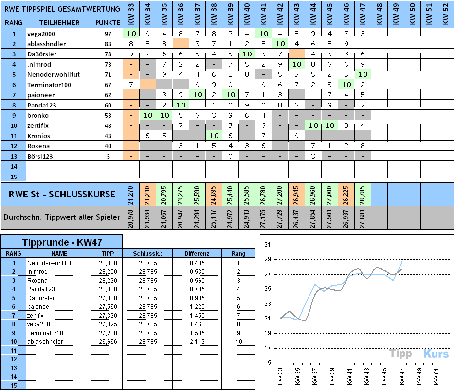 Aktuelle Tippliste KW49: (schon jetzt ein massiver Spread :D)