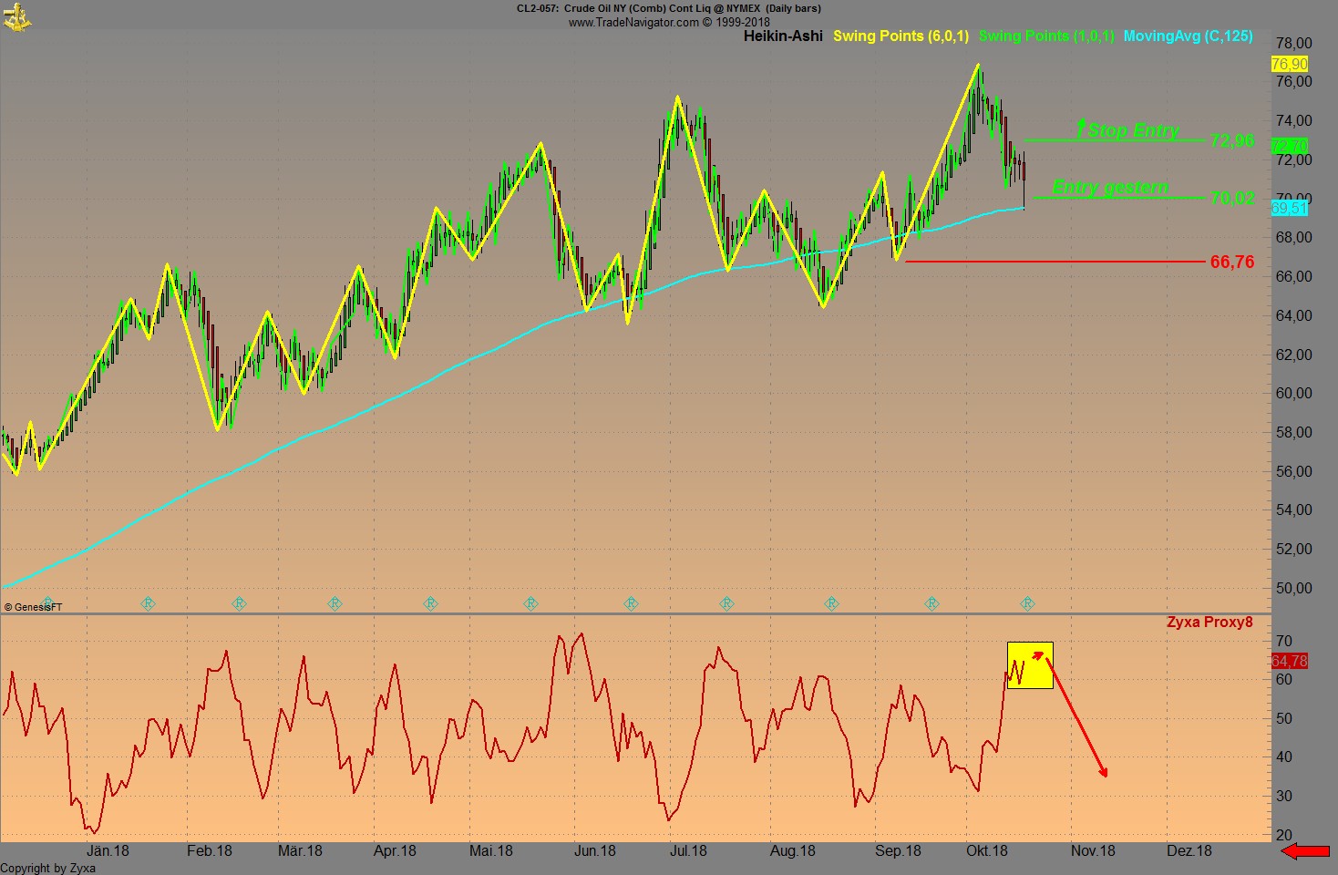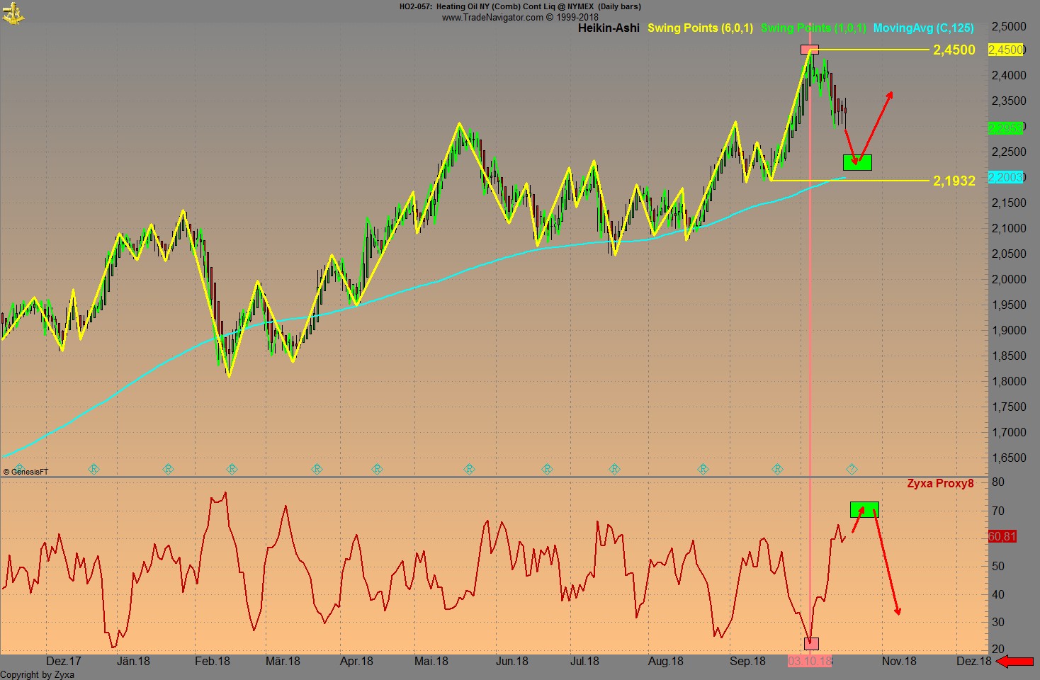 Das wichtigste ist immer......IMMER der Trend! Man kann Anti-Zyklisch traden, klar......wie zum Beispiel am 3. Oktober bei Heizöl. Ein GD ist wie ein Hund an der Laufleine, ist der Hund (Kurs) sehr weit vom 125er GD (Hundhalter) entfernt, steigt die Wahrscheinlichkeit einer Rückkehr.
