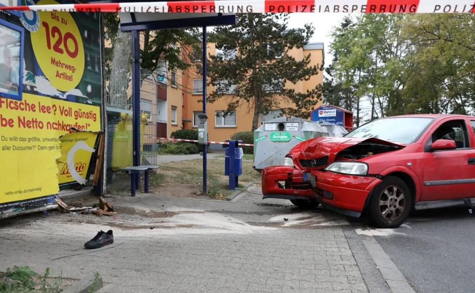 Foto: Autoraser rast in Busshaltestelle, dort steht Ali H. und wartet. Quelle Bild.de siehe oben den Link