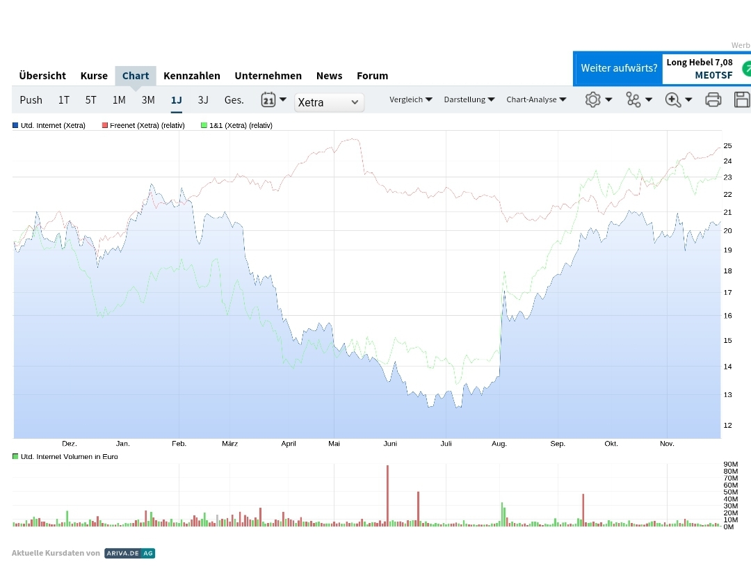 1&1 hatte im Sommer die langjährige Partnerschaft mit Telefonica Deutschland aufgekündigt. Während des Aufbaus eines eigenen Mobilfunknetzes will die United Internet-Tochter auf die Infrastruktur von Vodafone zurückgreifen. Durch den Wegfall des Großkunden wird der Mittelzufluss von Telefonica um 40 Prozent einbrechen, prognostizierte Analyst Usman Ghazi von der Berenberg Bank. Dies werde wohl eine Dividendenkürzung um 30 Prozent nach sich ziehen.