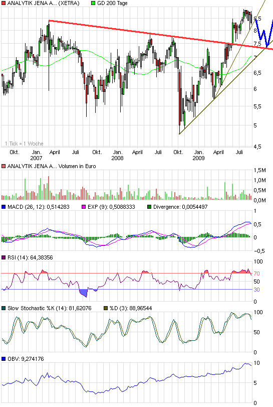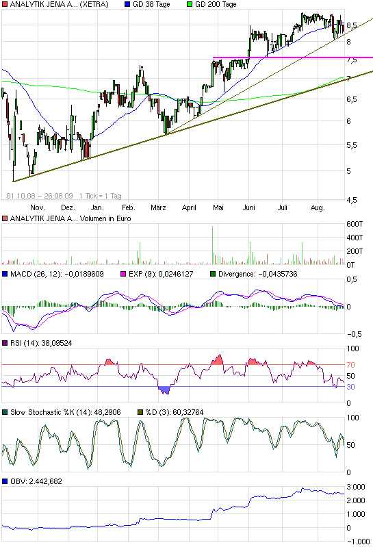 Genauso läuft es ggw. bei AJA. Das Chartbild über die letzten Jahre sieht grausam aus, aber das Unternehmen ist von Jahr zu Jahr immer wertvoller geworden und hat selbst im Jahr 2009 m.E. mindestens 25 - 30 % an Wert gewonnen. Es gibt kein !!! Anzeichen, warum dieser prozentuale Wertzuwachs in den nächsten 5 Jahren geringer ausfallen sollte. Das Vertriebsnetz wird verdichtet, neue Produkte eingeführt, neue Märkt erschlossen (USA, Japan), Synergien mit aquirierten Unternehmen gehoben.