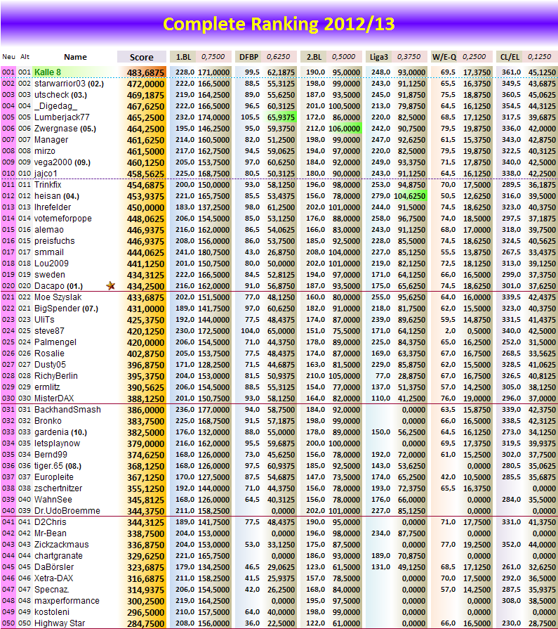 Tippspiel DFB Pokal, Saison 2012/13, Runde 4 VF