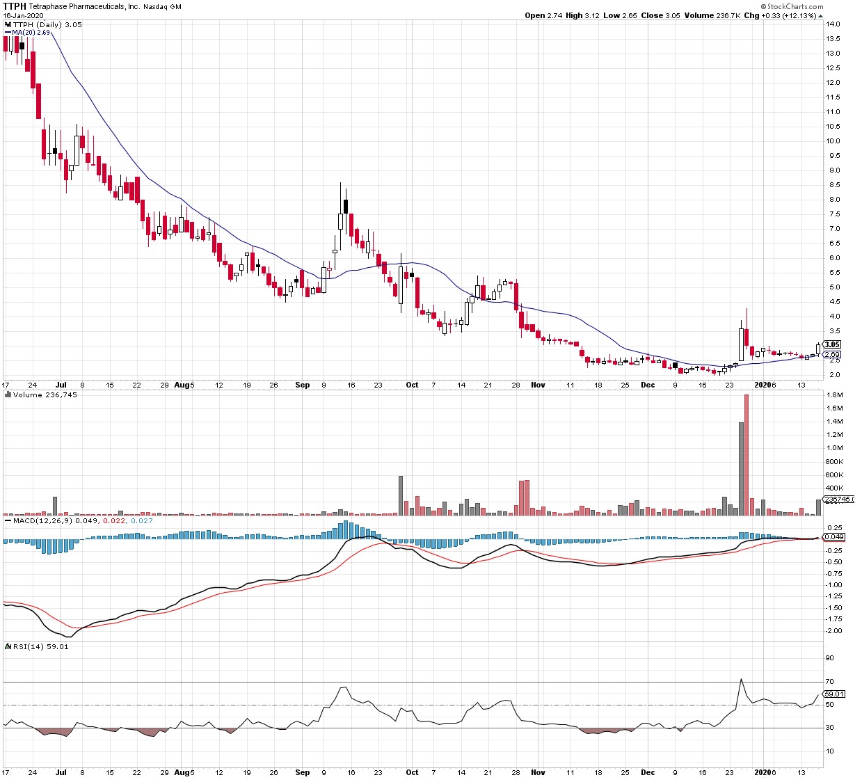 Zwar bin ich der Meinung, dass der aktuelle Pump noch länger dauern wird, aber der Trade lief für mich von Anfang an nicht gut - nachdem ich es am 22.1.2020 versäumt habe mehr als 20% Gewinn in zwei Tagen mitzunehmen, habe ich dann noch mein Verlust nicht begrenzt… Das passiert mir nicht nochmal, zumindest mit TTPH nicht... :-)