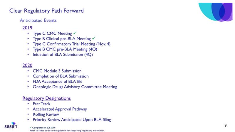 Summary The company reported a positive data update from the Phase 3 VISTA trial for BCG refractory high-grade NMIBC patients. The company anticipates submitting an NDA to the FDA by the end of 2019. Options markets have a 90% move in November priced in.