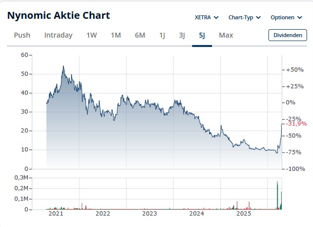 Das gilt für Nynomic, die bei einem ausgewiesenen Eigenkapital von 94 Mio. € (ohne Minderheiten) gerade mit 72 Mio. € bewertet werden (daher KBV von 0,77). Ich bin aber auch hoffnungsvoll, dass Firmen wie Stratec oder Jenoptik mittelfristig an die früher deutlich höheren Bewertungen rankommen. Bei Stratec sollte der demographische Wandel für eine Geschäftsbelebung sorgen, bei Jenoptik die steigende Halbleiternachfrage (KI, E-Mobilität, Data Center usw.). |