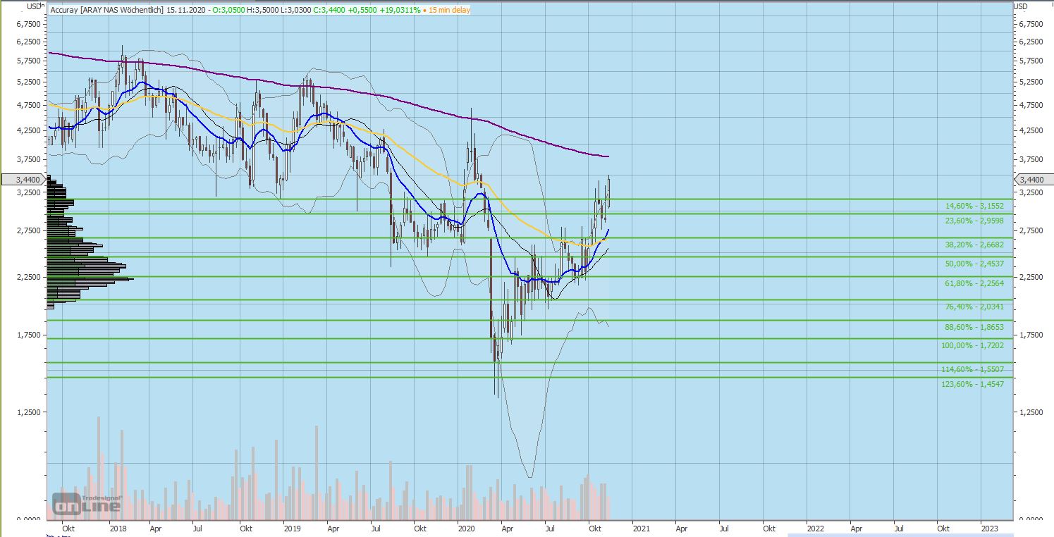 Infos auf: http://investors.accuray.com/stock-information/stock-quote-and-chart bzw: https://www.accuray.com/