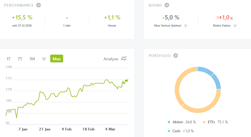 Die paar Fonds habe ich als kleinen Ausgleich genommen, da ich von deren Strategien überzeugt bin. Aber ich reduziere sie regelmäßig, um damit die 0,95% p.a. zu bezahlen..