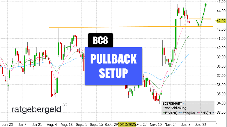 Der IT-Dienstleister Bechtle meldet für das dritte Quartal 2025 deutlich bessere Zahlen als erwartet: Das Geschäftsvolumen stieg im Jahresvergleich um 8.4 Prozent auf 2.05 Milliarden EUR, der Umsatz erhöhte sich um 5.1 Prozent auf 1.59 Milliarden EUR und das Vorsteuerergebnis legte auf rund 80.5 Millionen EUR zu. Aufgrund dieses unerwartet starken Ergebnisses setzt Bechtle nun auf einen kräftigen Schlussspurt im vierten Quartal — mit einem Ziel: um die Jahresziele zu erreichen, müsste das Vorsteuerergebnis nochmals um etwa ein Viertel steigen. Analysten sehen das ebenfalls positiv: Das Haus Jefferies behielt die Bewertung „Buy“ mit Kursziel 48 EUR bei — gestützt von der starken operativen Leistung und optimistischen Einschätzungen für das kommende Quartal. Noch klarer äußert sich Kepler Cheuvreux: Unter 27 europäischen Konkurrenten kürt das Analysehaus den Konzern zum „Best Sector Pick“. Grund: Bechtle ist nach den jüngsten Quartalszahlen wieder organisch gewachsen und steht bestens da, um vom steigenden staatlichen Geldregen und ab 2026 von wieder investitionslustigen kleinen und mittleren Firmen zu profitieren. Aus Sicht der Charttechnik können wir die bullische Einschätzung bestätigen.