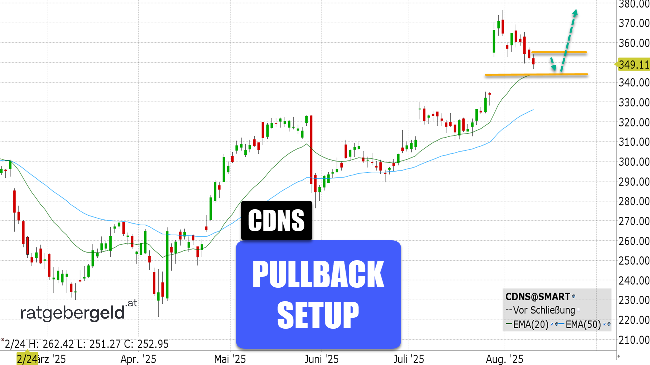 Pullback zum 20er-EMAStetige Zuwächse bei Umsatz und Gewinn sprechen bei Cadence Design Systems für die Bullen!