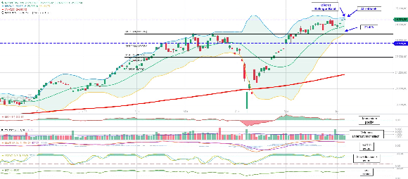 · 100-Tage-Linie: 22.430 und 200-Tage-Linie: 20.891 sowie: 38-Tage-Linie: 23.021