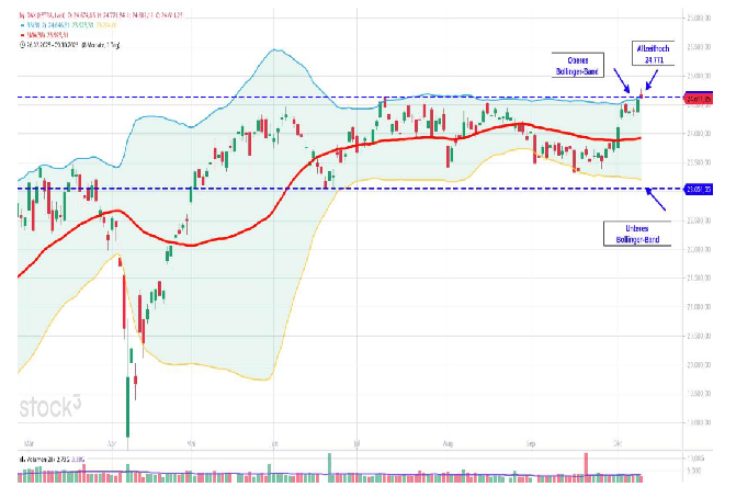 - Oberes Bollinger-Band: 24.731, Mittleres Bollinger-Band: 23.902, Unteres Bollinger-Band: 23.073