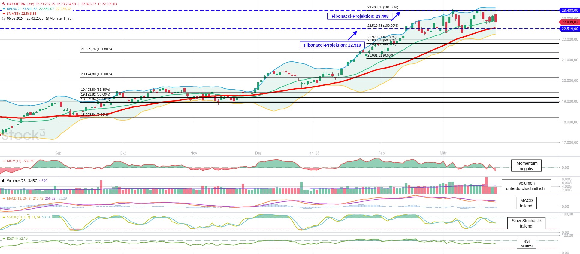 Blick gilt den 22.519: Der deutsche Leitindex ging gestern mit einer roten Tageskerze aus dem Handel. Dabei unterschritt er das Mittlere Bollinger-Band. Für heute gilt daher der Blick auch den 22.519 Punkten.