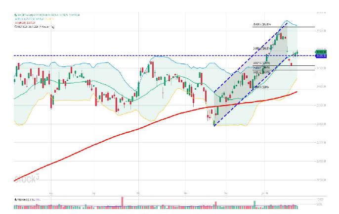- Nächste charttechnische Widerstände: 25.071, 25.122, 25.412