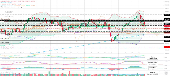 · Oberes Bollinger-Band: 19.173, Mittleres Bollinger-Band: 18.467 und Unteres Bollinger-Band: 17.761