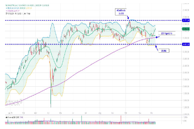 - 100-Tage-Linie: 23.954, 200-Tage-Linie: 23.542, 38-Tage-Linie: 23.870