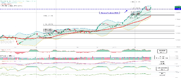 Markttechnik steigend und positiv: Der Trendfolgeindikator MACD zeigt sich auch heute wieder neutral. Der zweite Trendfolger, der Ichimoku-Indikator, steht wie gehabt und immer noch für eine übergeordnete langfristige Trendfestigkeit und bei etwaigen Kursrückgängen - wie zuletzt gesehen - weiterhin schlimmstenfalls für eine kurzfristige Konsolidierung. Die Slow-Stochastik steigt an. Ebenso der RSI. Das Momentum präsentiert sich weiterhin positiv. Die Markttechnik steht damit wie gehabt für eine mittel- bis langfristig intakte übergeordnete Aufwärtstendenz. Kurzfristig stehen die Zeichen gut, dass die 22.519 Indexpunkte zwar getestet, aber auch gehalten werden können.