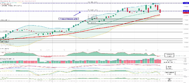 - Oberes Bollinger-Band: 23.300, Mittleres Bollinger-Band: 22.631 und Unteres Bollinger-Band: 21.952