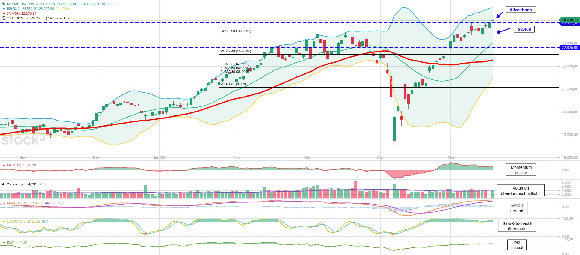 Markttechnik unverändert freundlich: Der Trendfolgeindikator MACD zeigt sich am heutigen Mittwoch weiterhin in beiden Lesarten neutral und trendbestätigend. Der zweite Trendfolger, der Ichimoku-Indikator, ist nach wie vor positiv. Das Momentum ebenso. Die chart- und markttechnischen Signale und Vorzeichen der letzten Wochen haben sich mehr als eindrucksvoll bewahrheitet und fortgesetzt. Die Slow-Stochastik zeigt sich auch heute wieder überkauft. Ein akutes Verkaufssignal wirft sie trotzdem immer noch nicht ab. Das Obere Bollinger-Band (24.563) flacht sich zwar etwas ab, tendiert aber nach wie vor deutlich oberhalb des gestrigen Allzeithochs (24.082). Das kurzfristige Risiko bleibt technisch bis 23.408 Punkte begrenzt. Die Chance lässt sich dank der Markttechnik sogar noch weiter über das gestrige Allzeithoch beziffern. Dafür spricht die Gesamtkonstellation der markttechnischen Indikatoren.