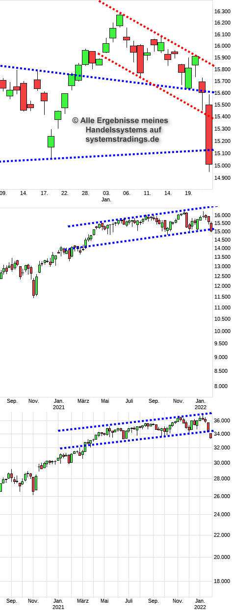 All die Jahre haben alle Crash geschrieen, jetzt traut sich keiner das Wort auszusprechen. Der Tageschart zeigte ja schon seit Wochen nach unten, inzwischen brechen auch im Wochenchart die Dämme. Man sieht, 15000 beim DAX und 34000 beim DOW sind wichtig. Nur noch eine gezielte Rettungsaktion, kann das Schlimmste verhindern. Hoffen wir mal darauf, dass uns nicht alles um die Ohren fliegt. Wer sich für Handelssysteme interessiert, mein System war seit Tagen short und hat diesen Crash vorher angezeigt. Charts: DAX-Tageschart, DAX-Wochenchart, DOW-Wochenchart. Weitere Aktienanalysen: https://www.youtube.com/channel/UClDeIjugHWPOMNQ_0R0AoXw