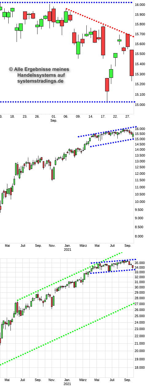 Ja, gerade wird die Hyperinflations-Karte ausgespielt, was allen den Rest geben wird. Es ist absichtlich herbeigeführt und ein Ende ist nicht in Sicht. Ist wie bei Corona, wer sich da noch erinnert, da hab ich vor 1,5 Jahren bereits gesagt, es ist alles beabsichtigt. Jetzt kann man froh sein, wenn der Oktober nicht als Crashmonat herhalten muss. Erst wenn charttechnisch alle Abwärtstrends und Seitwärtstrends nach oben gebrochen werden, ist der Weg für den goldenen Oktober frei. Ansonsten ist die 15000 wichtig, denn darunter dämmerts dann jedem. Charts: DAX-Tageschart, DAX-Wochenchart, DOW-Wochenchart.