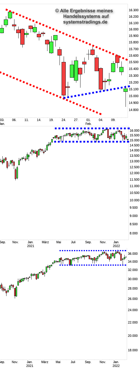 Der DAX hat heute mit einem Gap die untere blaue Trendlinie durchbrochen, was den Weg bis zur unteren Unterstützung frei machte. Punktgenau hier drehte er und testet somit den Seitwärtstrend im Wochenchart. Charts: DAX-Tageschart, DAX-Wochenchart, DOW-Wochenchart. Weitere Aktienanalysen: https://www.youtube.com/channel/UClDeIjugHWPOMNQ_0R0AoXw
