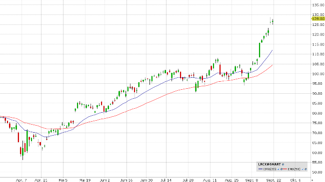 LAM Research, ein führender Hersteller von Halbleiter-Produktionsanlagen, spezialisiert sich auf komplexe Systeme zur Ätzung und Abscheidung von Materialschichten auf Siliziumwafern. Wie im Chart zu sehen ist, erlebte die LAM Research-Aktie in jüngster Zeit einen starken Anstieg. Chancen könnten sich bei einem Rücksetzer ergeben, da die Aktie in der zyklischen Chip-Industrie weiterhin Volatilität aufweisen kann.