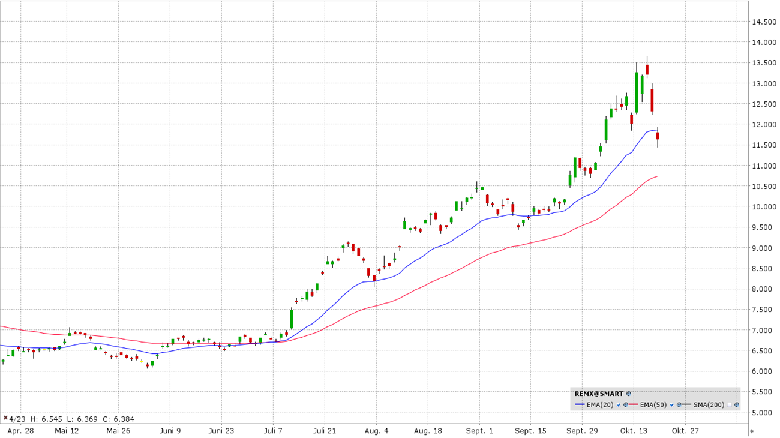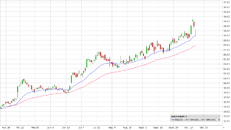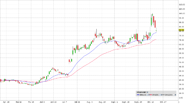 MP Materials ist der größte Produzent und Verarbeiter von Seltenerdmaterialien in der westlichen Hemisphäre. Das Unternehmen betreibt die Mountain Pass Mine in Kalifornien, die als eine der reichhaltigsten Lagerstätten außerhalb Chinas gilt. Der Fokus liegt auf der Gewinnung von Neodym und Praseodym, die entscheidend für die Herstellung von Permanentmagneten sind. Diese Magnete sind unverzichtbar für E-Motoren (E-Fahrzeuge), Windturbinen, sowie moderne Elektronik und Verteidigungssysteme. Das Unternehmen hat wichtige strategische Partnerschaften und Aufträge gesichert, unter anderem mit dem US-Verteidigungsministerium und Apple (langfristiger Liefervertrag für recycelte Magnete und Aufbau von Recyclingkapazitäten). Charttechnisch könnte der Rücksetzer zur 20-Tagelinie neue Einstiegschancen eröffnen.