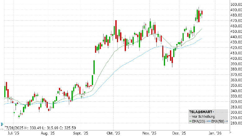Die Aktie des Elektroautopioniers zeige im Halbjahresvergleich einen Zuwachs von über 46 Prozent und erreichte im Wochenverlauf ein neues Allzeithoch erreicht. Die Fortschritte beim Autonomen Fahren könnten weitere Impulse für die Kursentwicklung liefern. Nach den rückläufigen Ergebniszahlen im Jahr 2024 verfehlte das Unternehmen auch in diesem Jahr in allen Quartalen die Erwartungen und wird wohl auch für das Gesamtjahr erneut einen Gewinnrückgang melden.