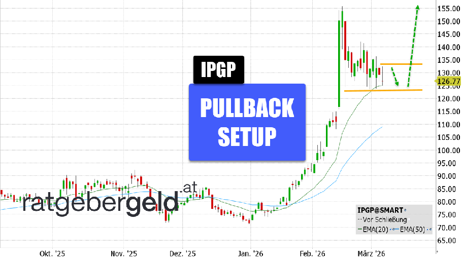 Rückblick: Ein Kursplus von rund 50 Prozent in sechs Monaten prägt das Chartbild der IGP-Photonics-Aktie. Insbesondere rund um die jüngsten Quartalszahlen entwickelte sich starkes Momentum, das in einem neuen Pivot-Hoch mündete. Mit dem anschließenden Rücksetzer testete das Wertpapier zweifach den 20er-EMA, blieb aber mit Schlusskursen darüber.