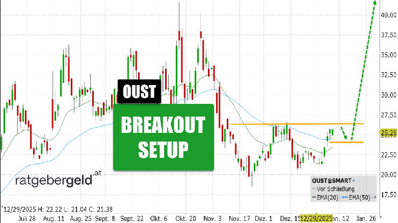 Rückblick: Die an der US-Technologiebörse NASDAQ gelistete Ouster-Aktie befindet sich in einer übergeordneten Seitwärtsbewegung mit einem Kursplus von rund 11 Prozent in den vergangenen sechs Monaten. Nach dem Pivot-Hoch vom Oktober formierte sich seit Anfang November eine Tasse-mit-Henkel-Formation, wobei der unmittelbare Kontakt zur Widerstandszone bei den letzten Tageskerze noch fehlt.