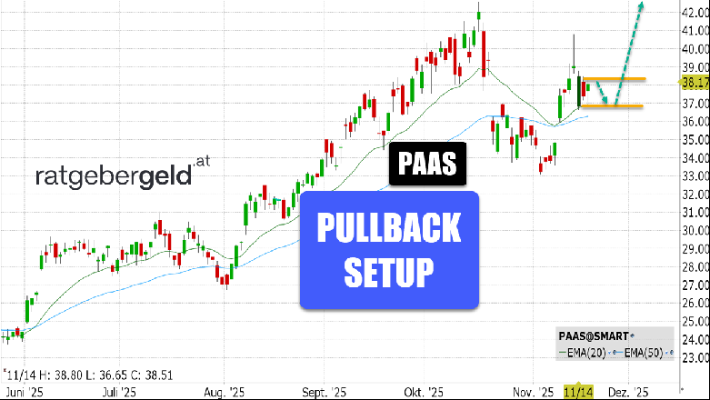 Pan American Silver verfehlte im Q3 2025 zwar die erwarteten Gewinn- und Umsatzzahlen, legte aber dennoch ein starkes operatives Ergebnis vor. Der freie Cashflow erreichte 251.7 Mio. USD, die Silberproduktion 5.5 Mio. Unzen und die Goldproduktion 183.5 Tsd. Unzen. Die erzielten Preise lagen bei 39.08 USD für Silber und 3479 USD für Gold je Unze. Die Gesamtförderkosten (All-in Sustaining Costs, AISC) im Silbersegment betrugen 15.43 USD je Unze, wobei die Mine Juanicipio in Mexiko mit minus 7.34 USD besonders niedrige Kosten aufwies. Dies deutet auf Gutschriften aus Nebenprodukten hin. Der Umsatz belief sich auf 854.6 Millionen USD und lag damit leicht unter den Markterwartungen. Der bereinigte Gewinn je Aktie lag mit 0.48 USD ebenfalls unter den prognostizierten 0.51 USD. Die Liquiditätslage bleibt mit 910.8 Mio. USD an Barmitteln und einer Kreditlinie über 750 Millionen USD solide. Das Unternehmen hob seine Jahresprognose für die Silberproduktion auf 22.0 bis 22.5 Millionen Unzen an und senkte gleichzeitig die erwarteten AISC auf 14.50 bis 16.00 USD. Chart und Saisonalität sprechen dafür, dass die Silberrallye weitergeht!