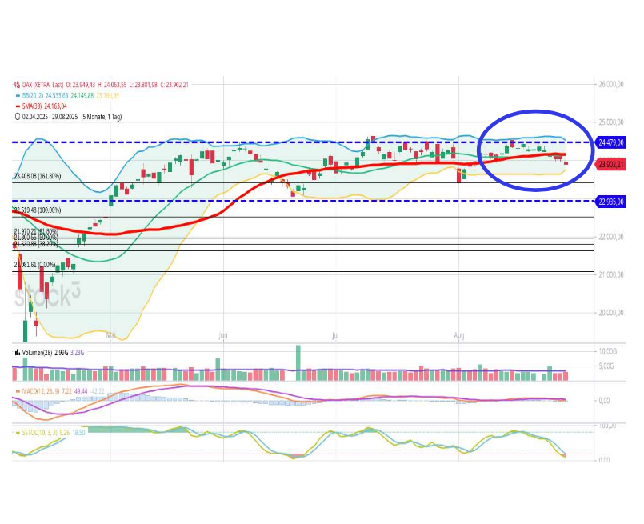 - Oberes Bollinger-Band: 24.534, Mittleres Bollinger-Band: 24.150, Unteres Bollinger-Band: 23.766
