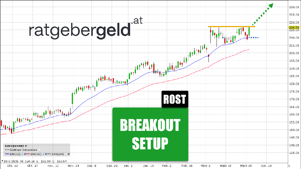 Ross Stores ist nicht nur ein gewöhnliches Kaufhaus, sondern eher ein Ort, an dem das Einkaufen zum „Schatzsuchen“ wird. Das Sortiment wechselt ständig. Der Chart zeigt einen sehr sauberen Aufwärtstrend, der sich über die letzten Monate gefestigt hat. Aktuell sehen wir eine Konsolidierung direkt unterhalb eines markanten Widerstands.