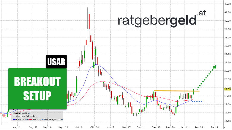 Die Selten-Erde-Aktie hat sich über die letzten Monate (Dezember bis Januar) in einer Seitwärtsphase stabilisiert. Heute wurde der entscheidende horizontale Widerstand bei 19 USD überwunden.