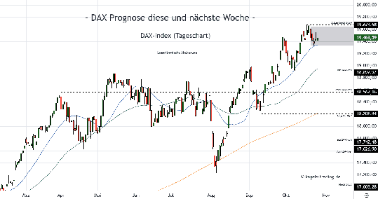 In der vorherrschenden Situation bleibt ein Richtungsentscheid abzuwarten, bevor der DAX weiterhin auf die nächste runde Marke bei 20.000 Indexpunkten spekulieren darf. Abhängig vom Wochenstart könnte am Dienstag bereits ein neues Rekordhoch auf dem Plan stehen. Ein Bruch unter 19.300 hingegen dürfte die Korrekturstimmung befeuern und Kursziele am Mai-Hoch ausrufen.