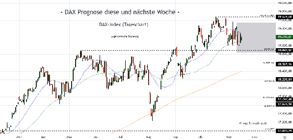 Sollte die steigende 50-Tage-Linie weitere Gewinnmitnahmen abwenden, bleibt der Anlauf auf die 20.000-Punkte-Marke bis zum Jahresende noch im Rahmen des Möglichen. Stärkere Korrekturstimmung könnte hingegen in panikartige Verkäufe übergehen und auch schnell den 18.000er-Bereich unter Druck setzen.