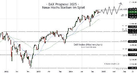 • Mittelfristige DAX Prognose 2025-2026: Im Anlauf über die runde Marke bei 19.000 Punkten hat der deutsche Leitindex ein nächstes Allzeithoch markiert und lässt nach Abschluss eines Pullbacks noch weitere Rekordwerte in Richtung der 21.000er-Marke erwarten.