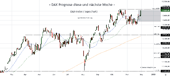 Aus der jüngsten Konsolidierungsphase hat der DAX in der vergangenen Woche seine Aufwärtstendenz fortgesetzt und nimmt im Wochenschlusskurs das Allzeithoch ins Visier. Damit wäre zum Wochenstart am Montag ein neuer Rekordwert zu erreichen. Gestaltet sich der Ausbruch dynamisch, dürfte den Anlegern im Dezember noch eine Adventsrallye bevorstehen.