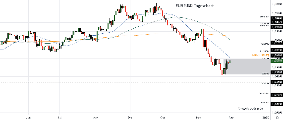 - Kurzfristige EUR/USD Prognose: Vom Septemberhoch aus läuft der Kurs in einer deutlichen Korrektur und hat im Verlauf unter der fallenden 20-Tage-Linie nun auch die 1,05er-Marke getestet. Vor Anlauf des nächsten Kursziels bei 1,03 zeigt sich zunächst eine Zwischenerholung, die jetzt an der 1,06er-Marke ermüden könnte.