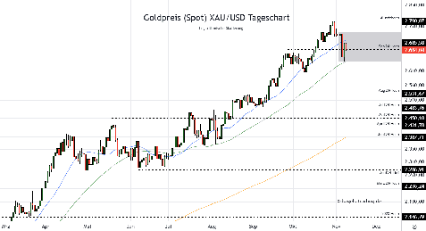- Kurzfristige Goldpreis Prognose: Nach seinem Hoch aus September ist der Goldpreis auch fest in den Oktober gestartet, nach einem Allzeithoch bei $2.790 zeigt sich jedoch Korrekturstimmung. Die Gewinnmitnahmen konnten zunächst an der 50-Tage-Linie abgefedert werden, ein Bruch dürfte jedoch Kursziele im $2.500er-Bereich aktivieren.
