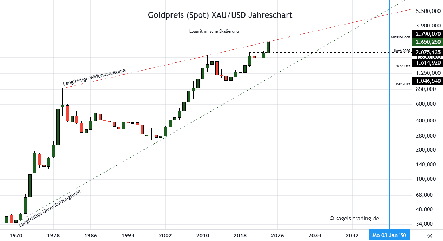 - Mittelfristige Goldpreis Prognose 2025-2026: Vom Tief des Jahres 2022 hat sich eine Aufwärtstrendstruktur etabliert, die nach korrigierenden Bewegungen mittelfristige Kursziele bei $3.000 ansteuern dürfte.