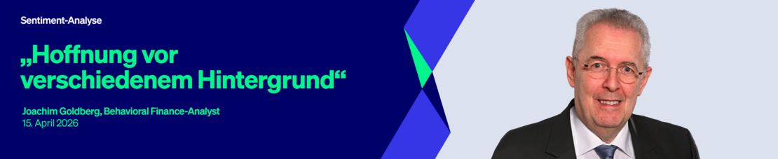 15. April 2026. FRANKFURT (Goldberg & Goldberg). Obwohl am Wochenende weltweit überwiegend mit Enttäuschung darauf reagiert wurde, dass die Verhandlungen zwischen den USA und dem Iran keinen greifbaren Erfolg gezeitigt hatten, scheinen die Börsianer neue Hoffnung geschöpft zu haben, dass der Krieg bald vorbei sein könnte. Zumindest haben die wichtigen US-Aktienindices die Kursverluste, die seit dem Beginn des Iran Kriegs entstanden waren, bereits vor einer Woche wieder wettgemacht und stehen gar vor neuen Rekordständen. Auch hierzulande musste der DAX über das Wochenende lediglich einen Kursverlust von zeitweise 1,6 Prozent über sich ergehen lassen, der ebenfalls schnell wieder aufgeholt wurde, gegenüber der vergangenen Stimmungserhebung jedoch nur zu einem kleinen Gewinn von 0,2 Prozent führte.