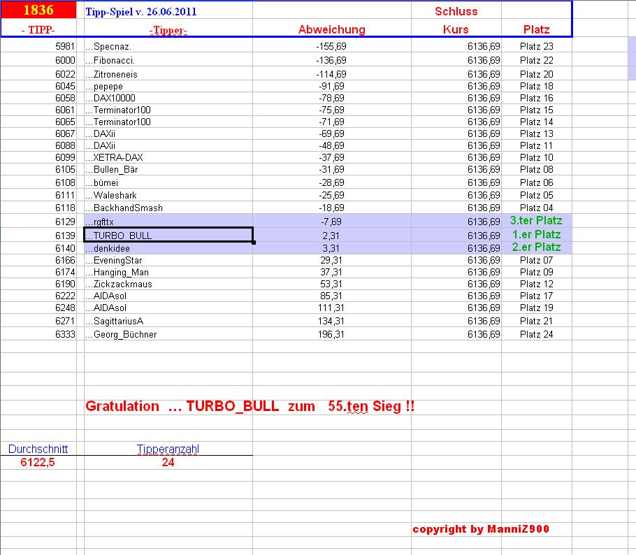 1.837.DAX Tipp-Spiel, Mittwoch, 27.06.2012