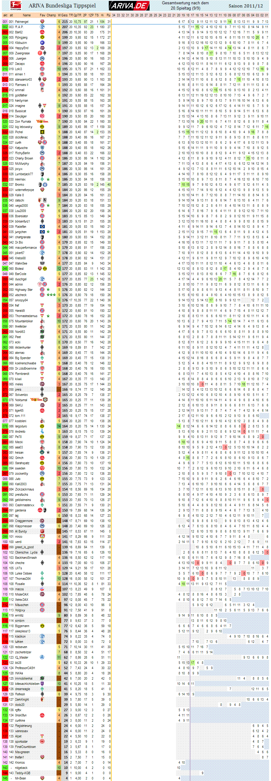 1.Bundesliga, Spieltag 20