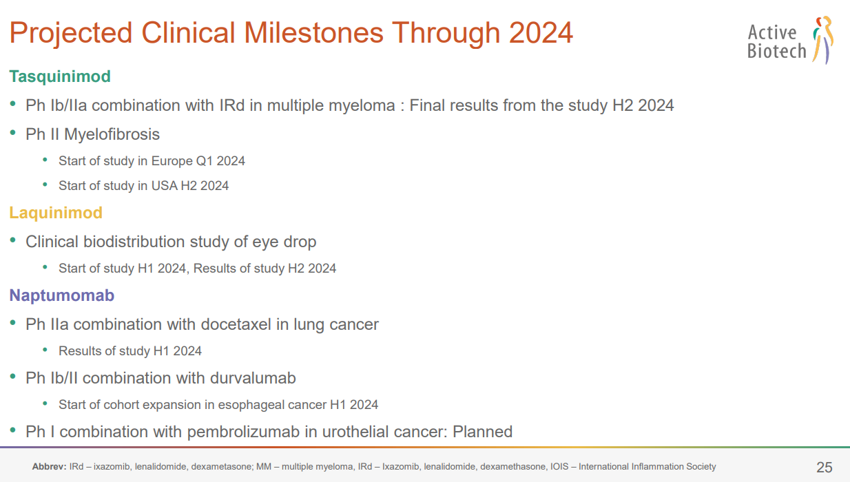 Tasquinimod successfully completed dose optimization in patients with multiple myeloma and advances into the pre-planned expansion cohort (September 11)